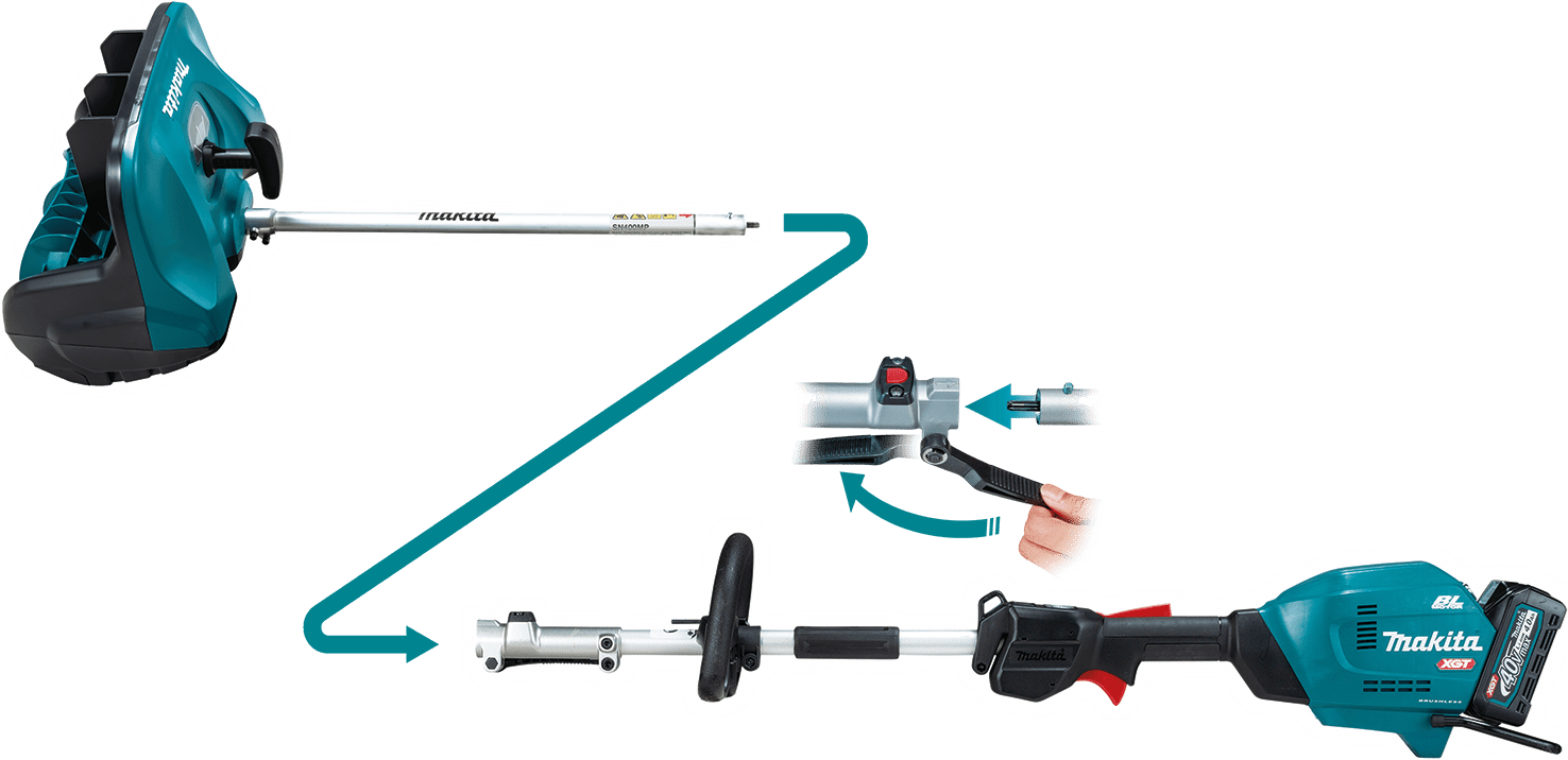Quickly attaches to EX2650LH (4 stroke powerhead) or DUX60Z (18Vx2 cordless powerhead) Split Shaft Multi-Tools using a quick release accessory mounting system
