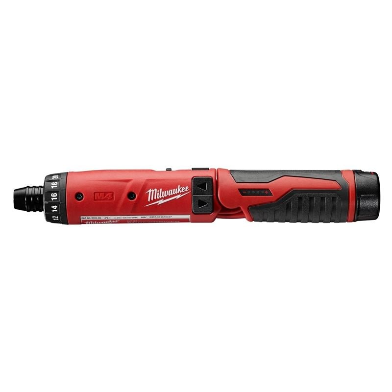 With the introduction of the new M4 2-speed screwdriver, Milwaukee Tool commits to a new line of cordless products in the 4 V category utilizing the companys REDLITHIUM 2.0 battery technology. The new screwdriver incorporates the latest Milwaukee core technologies in motor, REDLITHIUM intelligence electronics and REDLITHIUM 2.0 batteries, increasing the tools power and run-time, while shrinking its size. Featuring 44 in-lbs of peak torque and a 21-position clutch with auto shut-off, the new screwdriver offers improved torque control during repetitive applications. Two speeds, 200 and 600 RPM, offer further user control for precision work. At only 244 millimeters in length and under one pound, the M4 screwdriver is easy to use with one hand, featuring 1/4 in. quick-change chuck for one-handed bit changes.