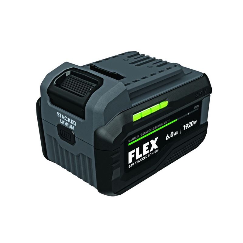 The FLEX 24V Stacked Lithium Battery Platform offers industry-dominating power and performance. Its intelligent power management enables higher discharging, and it combines THERMA-TECH+ cooling technology with high-performance heat management protection to offer faster charging and a longer battery life to power through the workday.