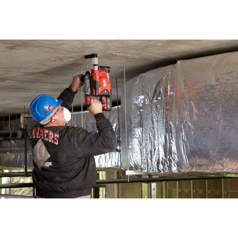 Compatible with major power tool brands of SDS plus rotary hammers and AC/DC hammer drills, the M12 HAMMERVAC universal dust extractor is the industrys only universal dust extractor. Featuring a replaceable, certified HEPA filter to meet jobsite regulations for the highest quality debris filtration available, the user is able to replace the filter independently of the dust box to cost-effectively maintain suction efficiency. Powered by the M12 Red Lithium battery pack for maximum portability, the M12 HAMMERVAC universal dust extractor is compatible with the entire M12 system, now offering over 40 cordless lithium-ion products.