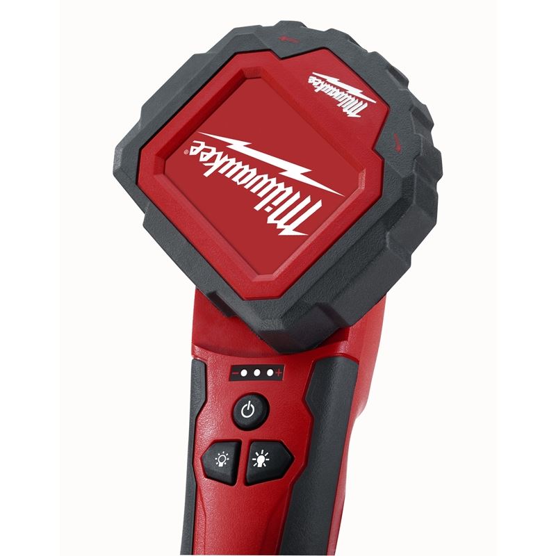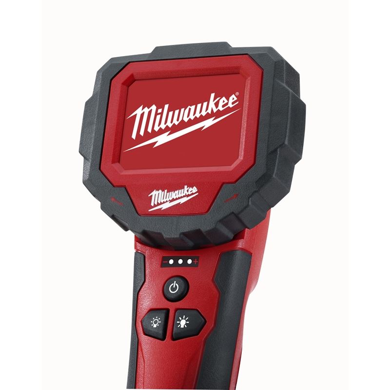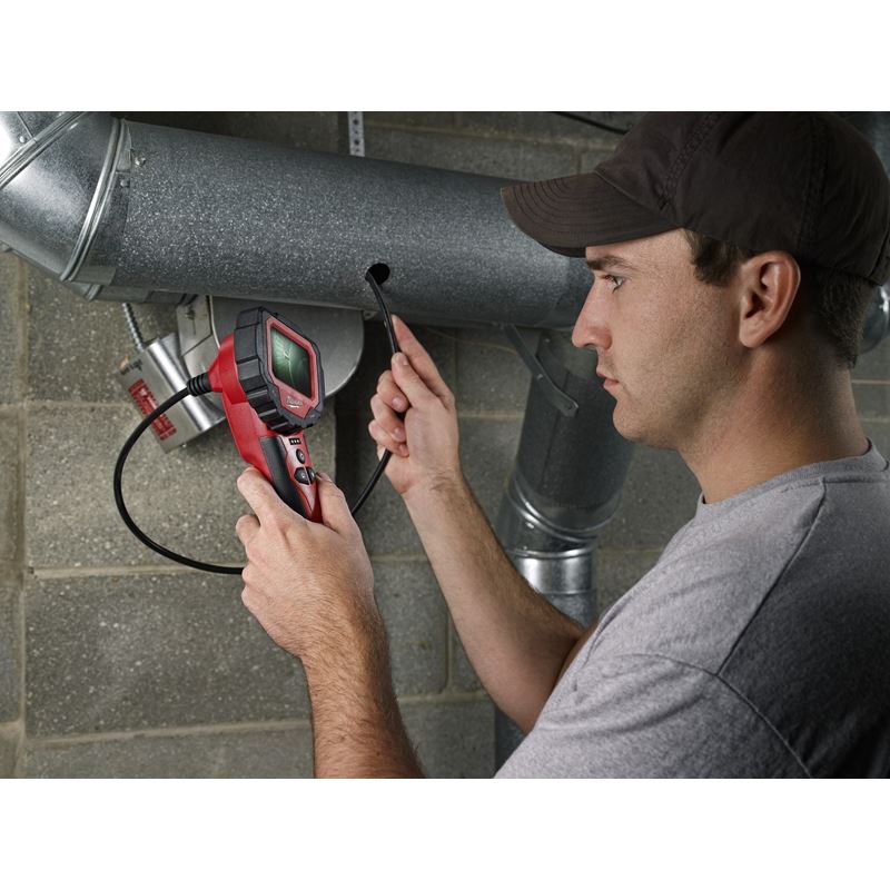 The Milwaukee (2313-20) M-Spector 360 rotating inspection scope features a ground-breaking rotating display enabling the user to orient the image without having to fight the cable. With a dense 640 x 480 digital image sensor and 4 LED lights, the M-Spector 360 delivers best in class image quality without shadows or glare. The larger 2.7 in. LCD display and 9 mm aluminum head provide easy viewing in the tightest of spaces, while optional accessories that attach to the cable head add to the versatility. With unmatched image control, clarity and brightness, the Milwaukee (2313-21) M-Spector 360 delivers a unique solution to improve the productivity of any professional.