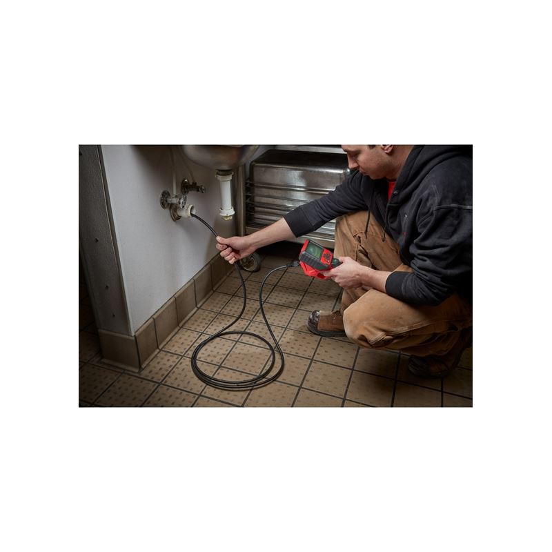 The M12 M-Spector Flex 9 ft inspection camera cable kit is the only contractor inspection camera that gives users the ability to see more, easier, faster. The kits 9 ft cable gives users extended reach in pipes and air ducts without the hassle of buying and connecting additional bulky, inflexible extensions. Leveraging state-of-the-art LED technology, users get 15X greater LED brightness for seeing further and clearer in large, dark spaces. The 12.5 mm (.49 in.) diameter and shortened camera head length gives users easier and greater access to tight spaces than 17 mm cameras. A 3.5 in. wireless LCD display console allows users to comfortably view images in any position. Capture best-in-class images or video on an SD card for easy documentation of warranty claims or service work for customers. The M12 M-Spector Flex 9 ft inspection camera cable kit is perfect for plumbing lines, H/VAC, facility maintenance, and residential or commercial trades where documenting inspections is essential.