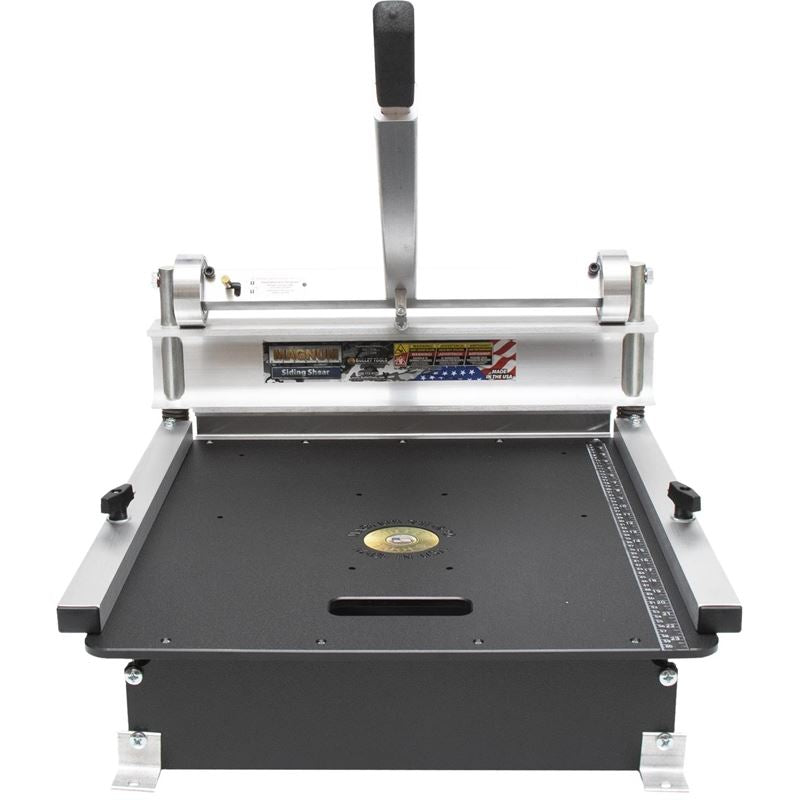 The 20 in and 26 in shear have an AngleMaster dual fence system for cuts at a variety of angles