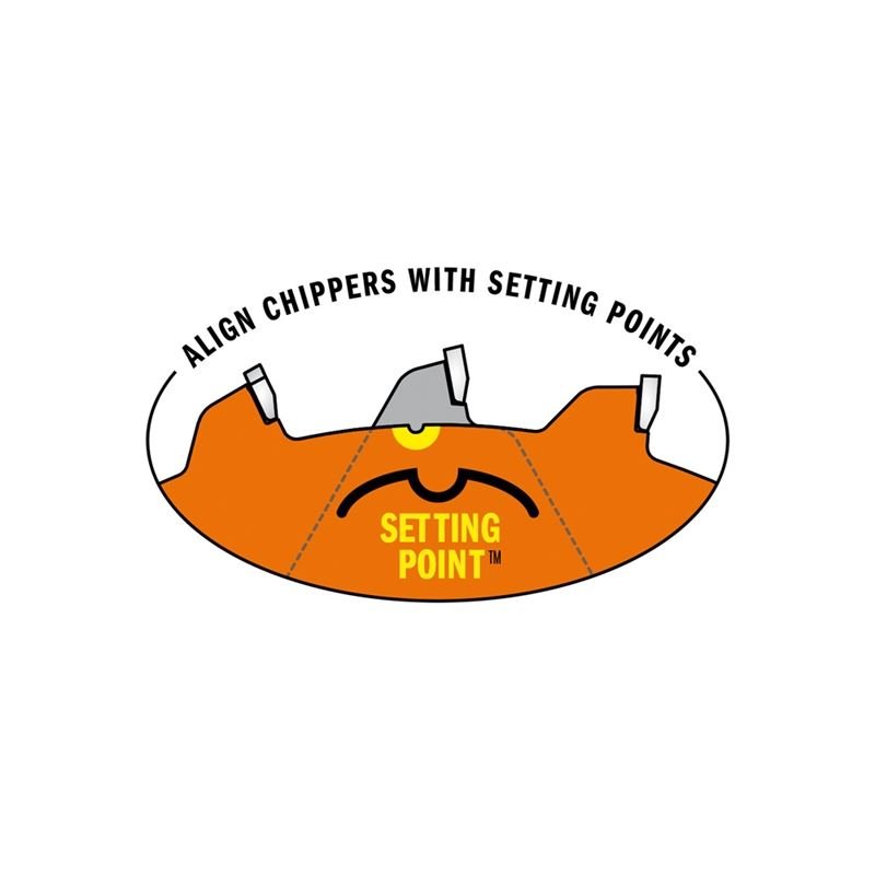 INNOVATIVE SETTING POINTS for chipper alignment.