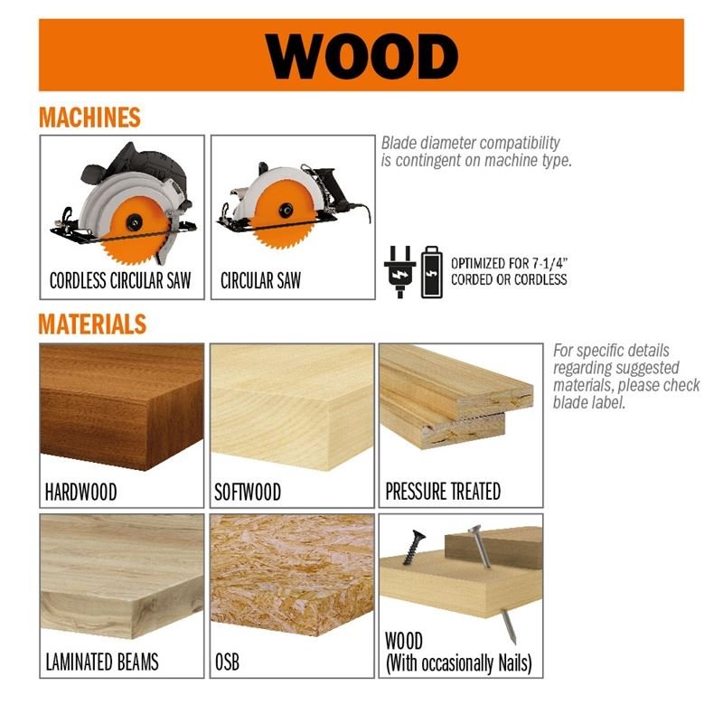 New gullet design is more efficient and cleaning wood chips quickly. The saw blade becomes lighter to feed, cuts faster and handles heavy materials better. Patented design that reduces blade mass, minimizes heat and substantially increases cutting efficiency with cordless and corded saws.
