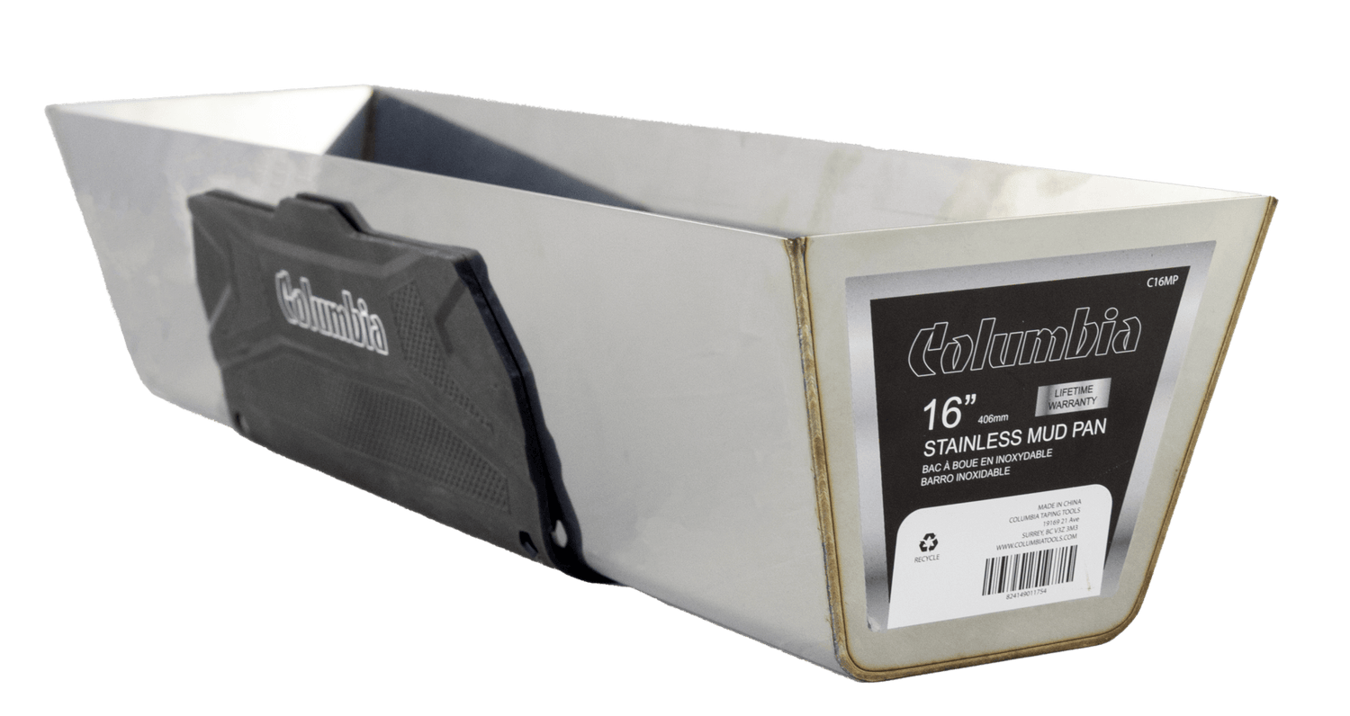 Columbia Tools has launched the Columbia Mud Pan—the first in our new line of premium hand tools, designed for professionals who demand durability, comfort, and performance Crafted from heavy-gauge stainless steel, this mud pan is built to withstand the toughest tasks, while its watertight, laser-welded seams ensure long-lasting reliability. With tapered ends and sides for a secure grip, this tool is ready to handle any job with ease. Plus, every Columbia Mud Pan comes with a free soft, non-slip rubber grip for enhanced comfort and ease of use.