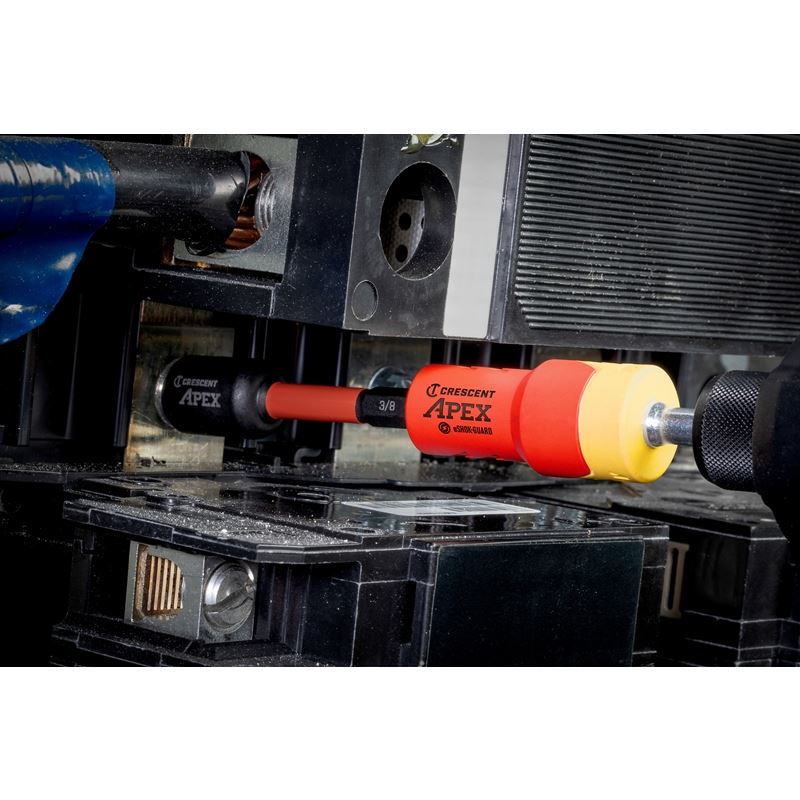 Protect yourself from electric shock with Crescent’s new patented isolated technology, eSHOK-GUARD, providing insulation of up to 1,000 volts. Combining safety and convenience for a revolutionary experience when working around potential live wire applications, eSHOK-GUARD’s impact-rated design withstands heavy-use, impact tool applications, so you never have to sacrifice protection when using power tools. With over 85percent of professionals experiencing shocks on construction job sites, eSHOK-GUARD is protecting you - for life.