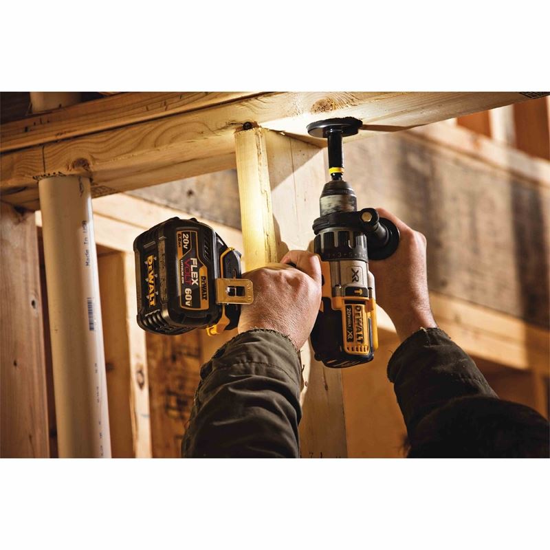 DCD996 20V MAX* 1/2 in. hammerdrill has a compact size (8.4 in. front-to-back length) and lightweight (4.7 lb) design to fit tight areas