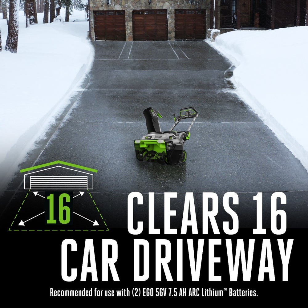 Clears up to a 16-car driveway with 8 inches of snow on a single charge when used with the two recommended 7.5Ah ARC Lithium™ batteries
