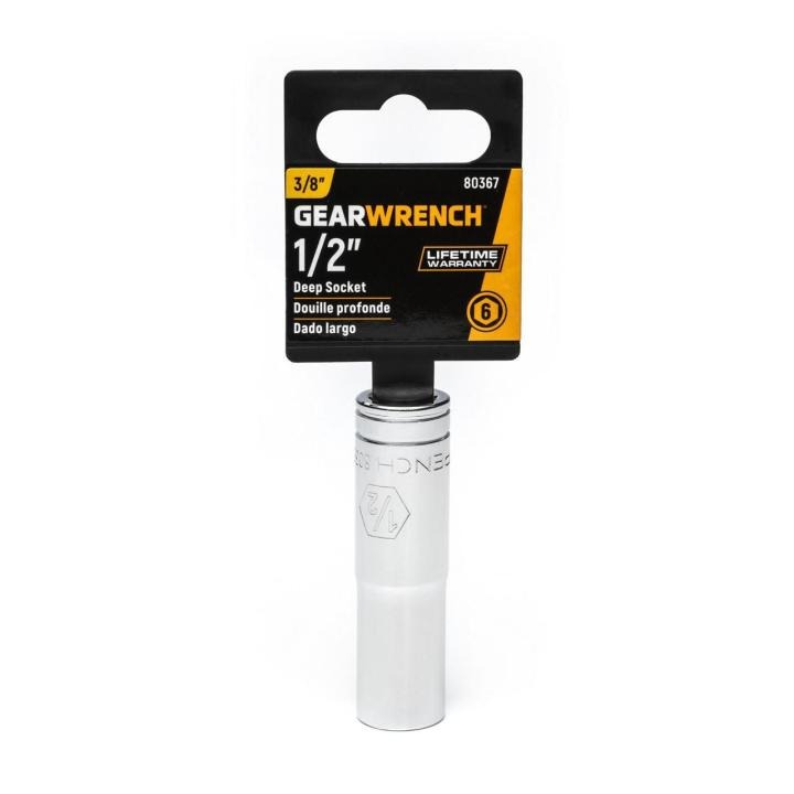 Living up to the reputation of the brand, GEARWRENCH full polish chrome sockets deliver unprecedented speed, strength, and access to almost any job. Large, hard-stamped markings allow for easy identification. Additionally, the off-corner loading design puts force on the flats of fasteners for improved durability and reduced fastener rounding. Available in standard, mid-length, and deep lengths, the GEARWRENCH sockets will get the job done.