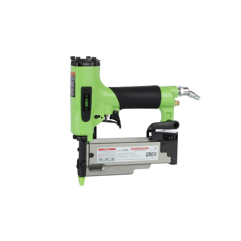 Performance Enhanced Innovative and Patented Magazine: The GREX P635 Sports a lightweight aluminum (Not Plastic) Extruded magazine, Stair-Stepped magazine, Increasing access to tighter areas and more angles, Automatically adjusts to pin size, Accepts headless pins from 3/8" to 1 3/8", The Rear magazine cap allows for both hex wrench and spare No-Mar Tip storage, a Durable yet operator friendly magazine latch, and last but not least a fastener supply window showing pin supply.