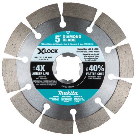 Makita E-07238 X‑LOCK 5" Segmented Diamond Blade for Masonry Cutting