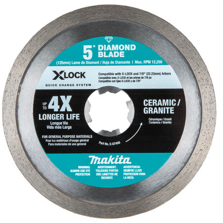 Makita E-07406 X‑LOCK 5" Continuous Rim Diamond Blade for Ceramic and Granite Cutting