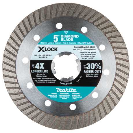 Makita E-07244 X‑LOCK 5" Turbo Rim Diamond Blade for Masonry Cutting