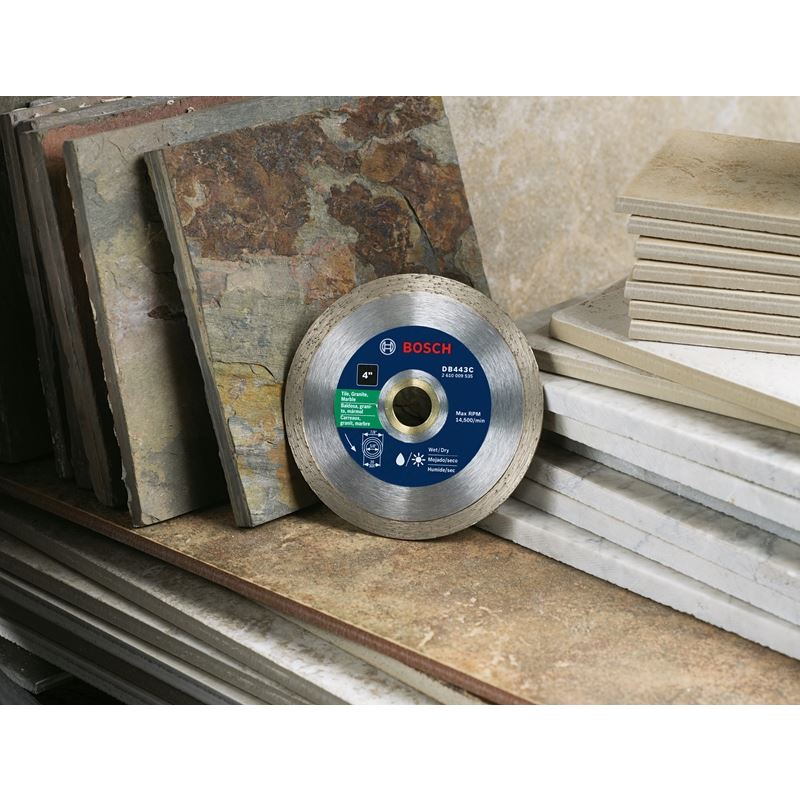 The Bosch Premium Continuous Rim Diamond Blade delivers the best performance in glass tile. Bosch's soft bond formulation was designed specifically for glass tile, and it helps provide clean and chip-free cuts. The continuous rim design is optimized for detail cuts.