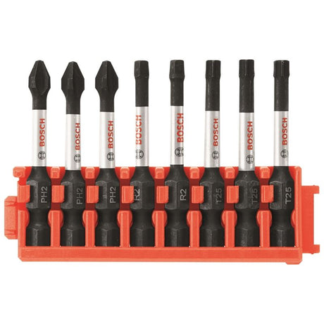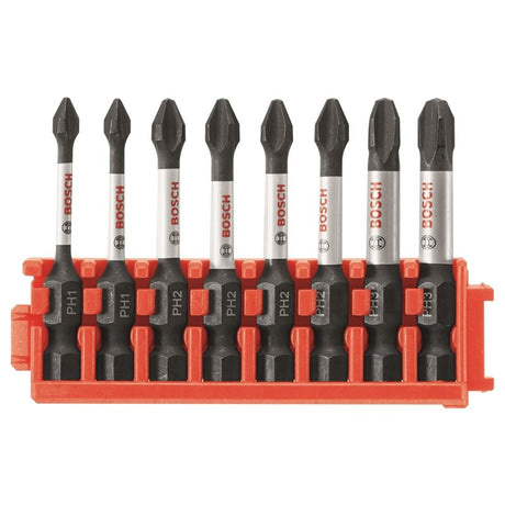 Bosch | CCSPH2208 8 pc. Impact Tough Phillips P2 2 In. Power Bits with Clip for Custom Case System