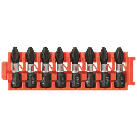Bosch | CCSPH2108 8 pc. Impact Tough Phillips P2 1 In. Insert Bits with Clip for Custom Case System