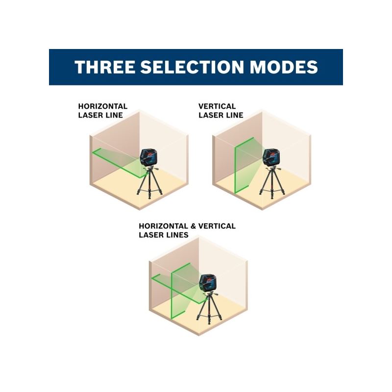 Easy-to-use laser setup modes – controls vertical, horizontal and cross lines