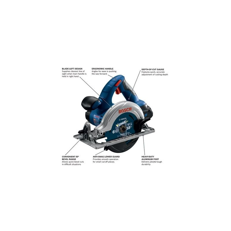 6-1/2 In. circular saw blade capacity cuts through 2 In. at 90 degrees and cuts through 2x material across entire bevel range
