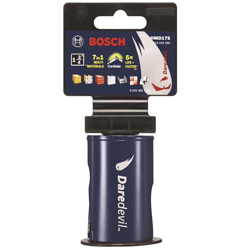 Bosch premium carbide teeth mean greater speed, time savings and a better result on the job. Fast, clean holes in multiple materials: wood, drywall, tile, brick, block, cement block and aluminum. Up to 10x greater speed, longer life than Bi-Metal hole saw. Cup is 50 percent deeper than standard hole saw to accommodate more applications. Multipurpose pilot bit optimized to material so the right bit always fits the right application