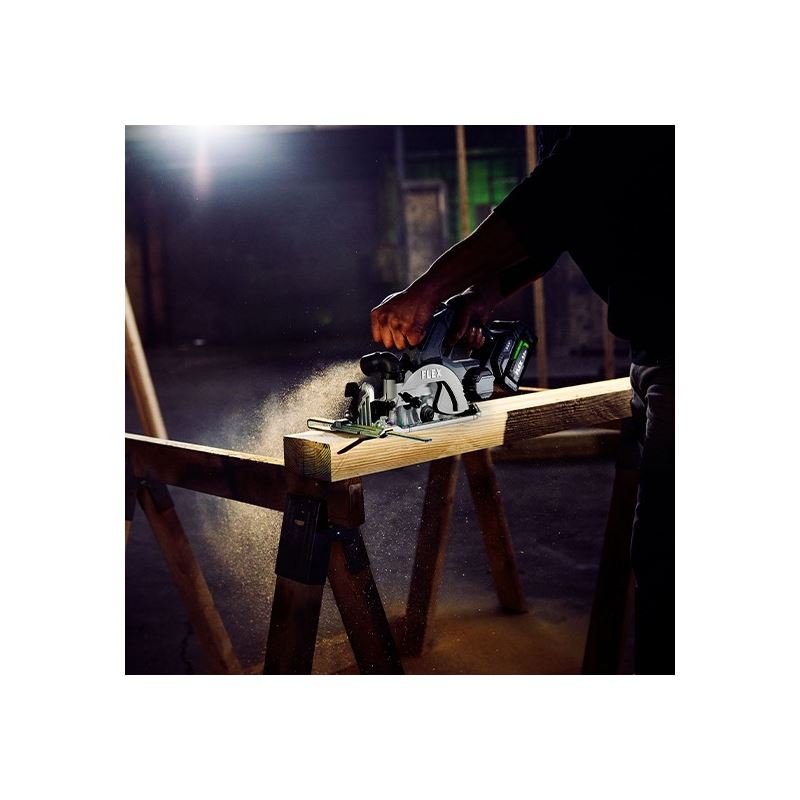 on both sides of every cut. The FLEX 24V Brushless 6-½in In-Line Circular Saw rips through 3X in one