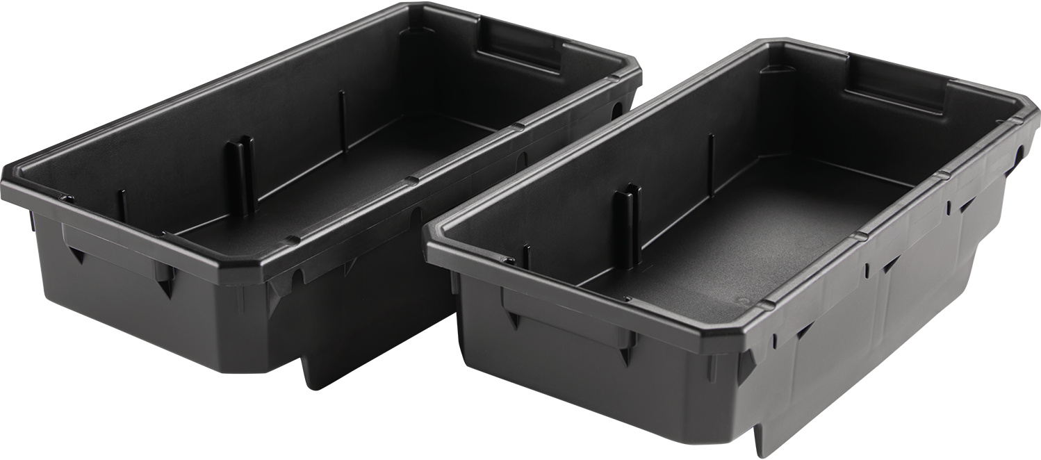 The Makita MAKTRAK™ Low-Profile Medium Organizer Bin Set features two bins designed with ideal dimensions to store more fasteners and larger accessories efficiently. These bins are interchangeable with two standard organizer bins, enhancing application versatility. Made from impact-resistant copolymer, they provide durable protection for your items. Convenient label slots allow for quick identification of contents, helping you stay organized on the job. This set includes two low-profile medium organizer bins, perfect for customizing your MAKTRAK™ storage system.