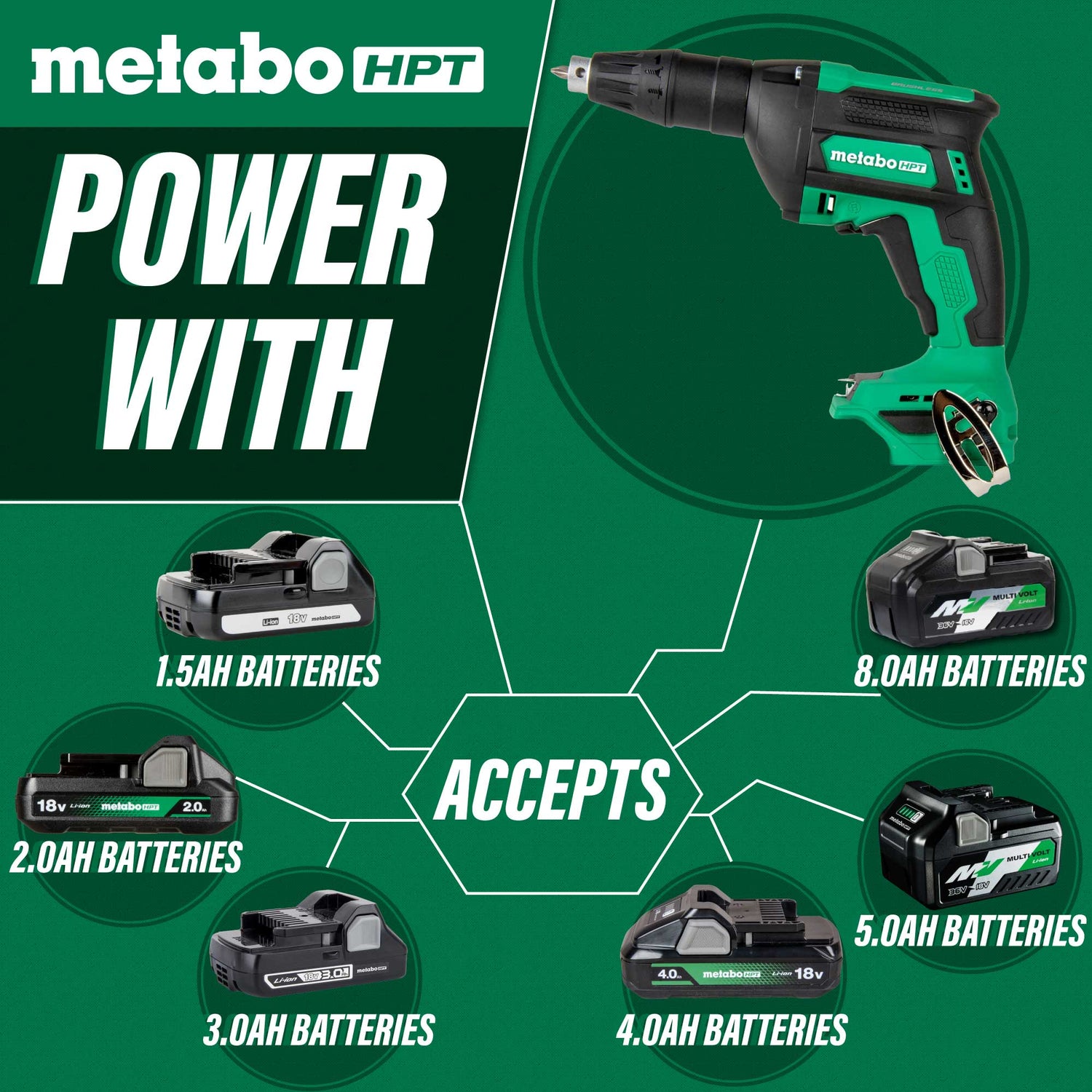 metabo HPT W18DAQAM 18V MULTIVOLT™ CORDLESS DRYWALL SCREW GUN KIT