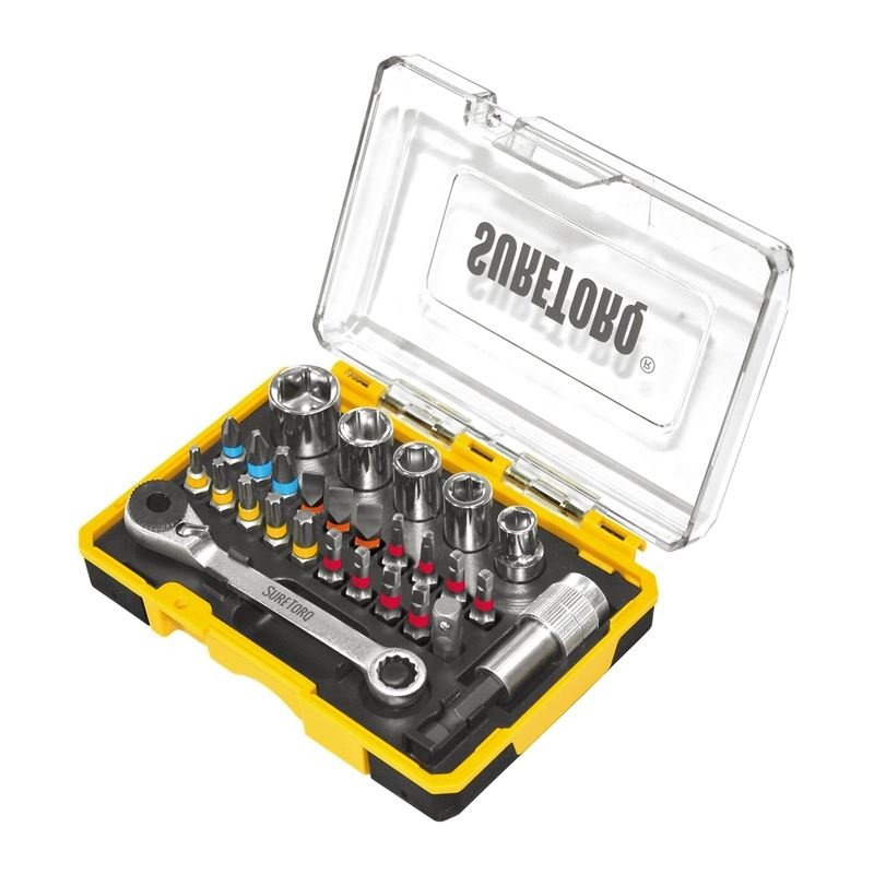 SURETORQ 1410-2703CA 27 PC Mini Ratcheting Wrench and Drive Accessory Set