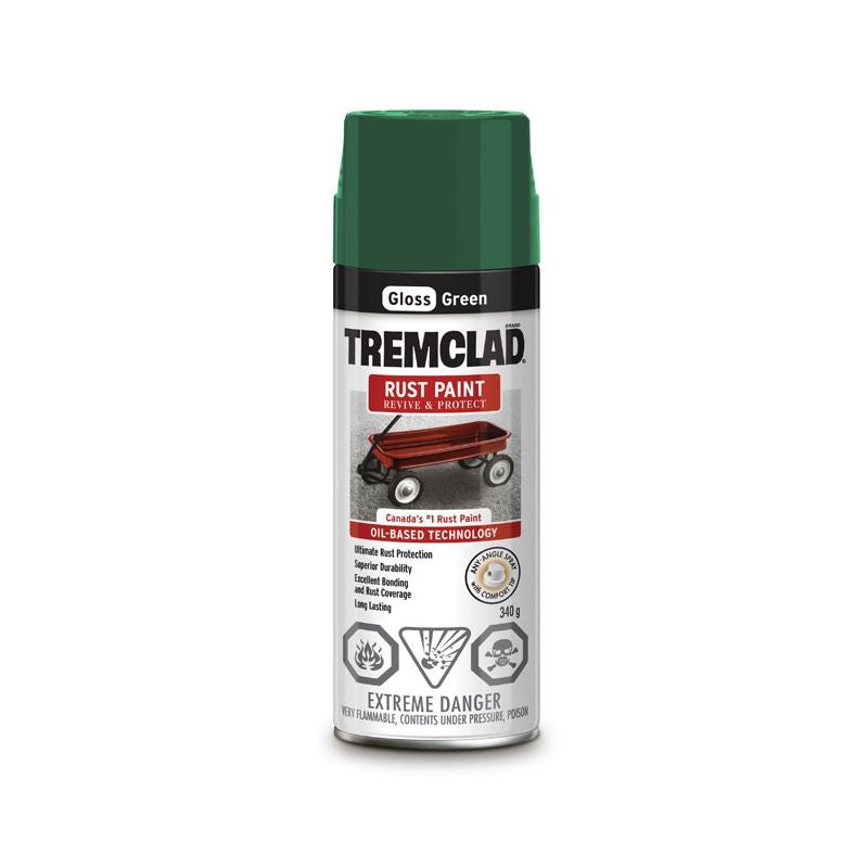 TREMCLAD Oil-Based Rust Paint Spray offers superior rust inhibition and is specially formulated to penetrate rust and bind to metal. Comfort spray tip with a wide finger pad prevents finger fatigue while providing excellent spray control. Any-angle spray feature even sprays upside down for hard to reach areas.
