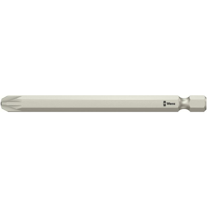 Premium bit for Pozidriv screws. Tough, for universal use. Chemically nickel-plated. 1/4" hexagonal, suitable for holding tools as per DIN ISO 1173-F 6.3.