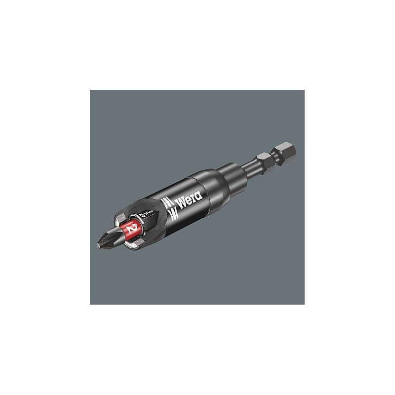 Wera Impaktor holder for the absorption of extreme impulse peaks. Special torsion effect thanks to the double-torsion spring. The Impaktor holder additionally holds long and heavy screws absolutely securely. This enables a rapid and dependable positioning of the screw. Ideal also for overhead work. Should, situation-related, the magnet not be desired e.g. when working with metal, it can be removed from the screwdriving zone and thereby be neutralised. Used mostly for manual power tool applications. Output: suitable for bits with 1/4" hexagon head drive as per DIN ISO 1173-C 6.3. Drive: 1/4" hexagon, suitable for power screwdrivers with take-up as per DIN ISO 1173-F 6.3.