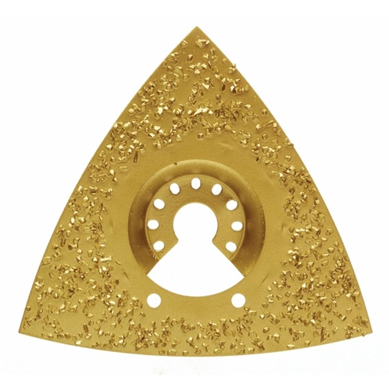 The carbide rasp accessory is a versatile accessory that can be used for grinding and shaping flat surfaces, as well as inside surfaces that are difficult to reach any other way. The carbide rasp allows the Multi-Max to be used for grinding cement, thin-set mortar, tile adhesives, stone and rasping wood. Preparing the surface for tile replacement is a common application for this accessory.