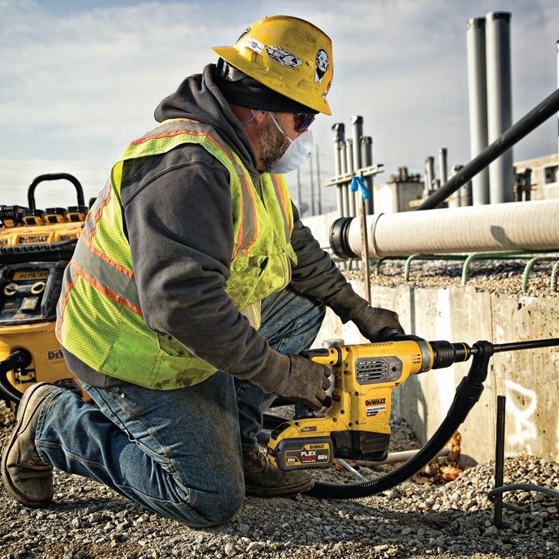 INCLUDES: DCH481 60V MAX* Combination Rotary Hammer,360° Side Handl