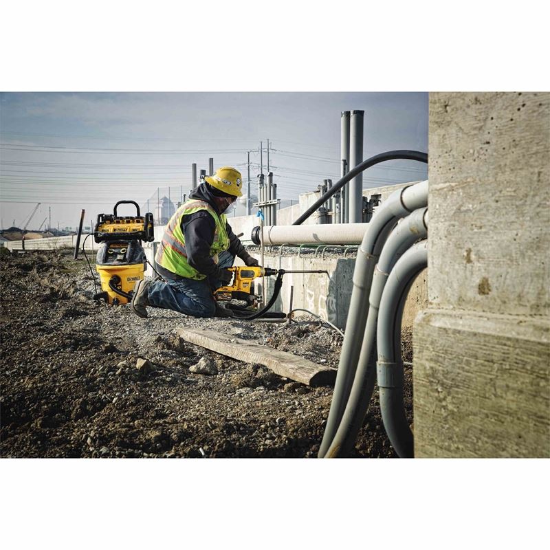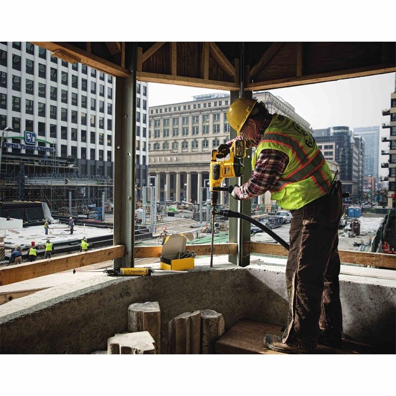 The DCH481X2 60V Max Brushless 1-9/16" SDS Max Combination Hammer is a light weight high-performance hammer that is powered by a DEWALT brushless motor and durable German engineered mechanism. The DCH481 delivers 6.1 joules of impact energy for fast drilling, even in the hardest concrete. The light weight design makes it ideally suited for horizontal serial drilling for #4 - #8 rebar, dry coring and chipping in any mid to upper wall and ceiling application. The patented E-Clutch system provides enhanced control to the user in a bind up situation and can help minimize sudden torque reaction compared to standard clutches. The Active Vibration Control technology employed delivers reduced user vibration for less user fatigue and greater productivity. With its balanced design, SHOCKS Active Vibration Control technology and Extreme Run Time, this hammer is ideally suited for all day use, even in the hardest concrete.