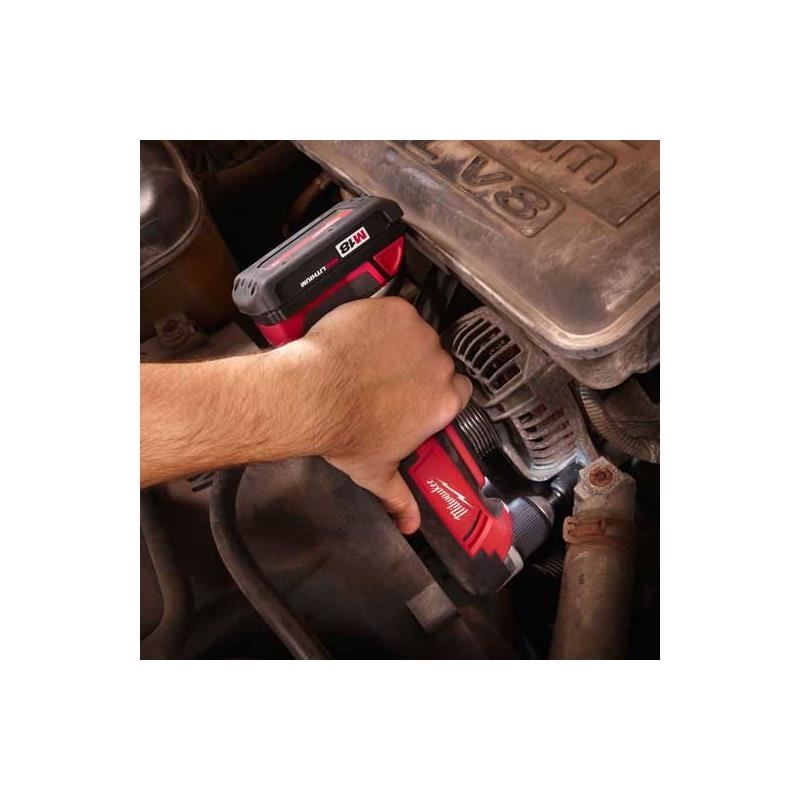 The Most Compact 18 V Right angle drill driver on the market. With a Total profile length of just 3 - 3/4", The M18 Cordless Lithium-Ion Right Angle Drill is a compact, Powerful solution for drilling and driving in tight spaces. It features the industries first electronic clutch, With 12 Torque settings and an LED indicator for fastening with complete control.