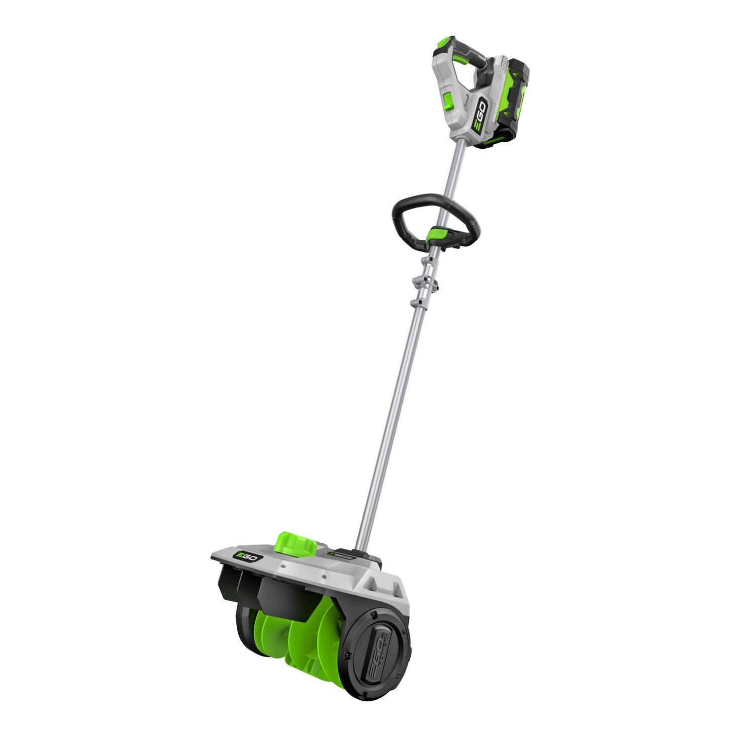 Throw snow in the tightest of spaces with the battery-powered EGO POWER+ 12” Snow Shovel. Light and easy to maneuver with its ergonomic handle design, this cordless snow shovel throws snow up to 25 feet with 60-degree directional control. The electric snow shovel cleans a 12-inch-wide path, making it ideal for snow removal on sidewalks, driveways, and decks. Clear up to a 3-car driveway with 6 inches of snow with the included 2.5Ah ARC Lithium™ battery. Its trigger with two-speed selector deliver throwing distance control while a high-efficiency brushless motor delivers long run times, low vibration, and an extended motor life. This lightweight battery-powered snow shovel features IPX4-rated weather-resistant construction for working in a variety of conditions. Its hinged shaft folds for convenient, compact storage between use. Experience Power Beyond Belief™ with the EGO POWER+ 12” Snow Shovel and the entire EGO POWER+ system.