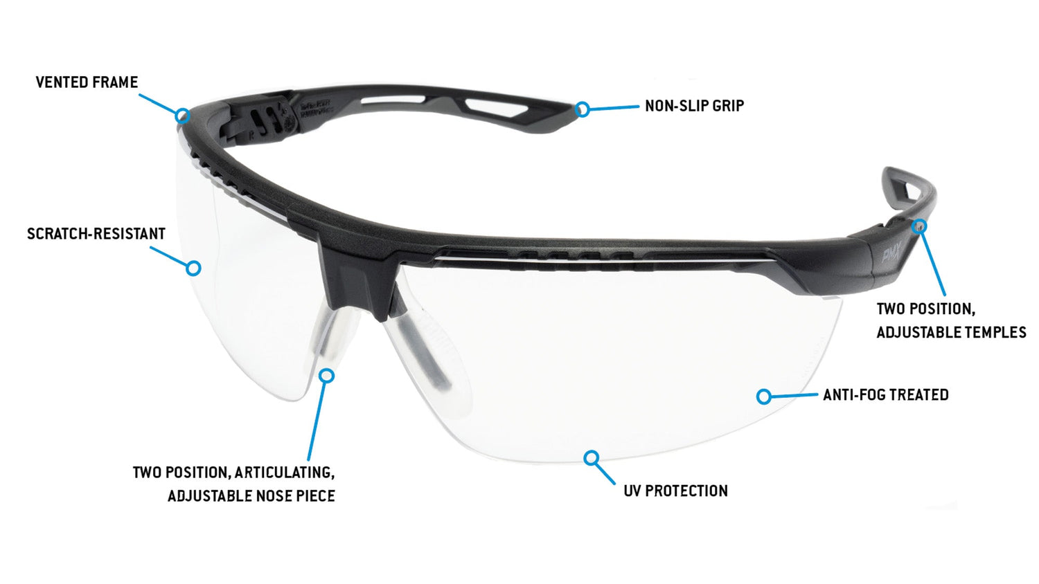 Experience personalized comfort with TruFlex™ safety glasses. Designed with a vented frame, they offer enhanced airflow, preventing fogging and ensuring clear vision in any environment. Featuring a customizable nose piece and temples, they ensure a tailored fit for every face, providing unmatched comfort and protection.
