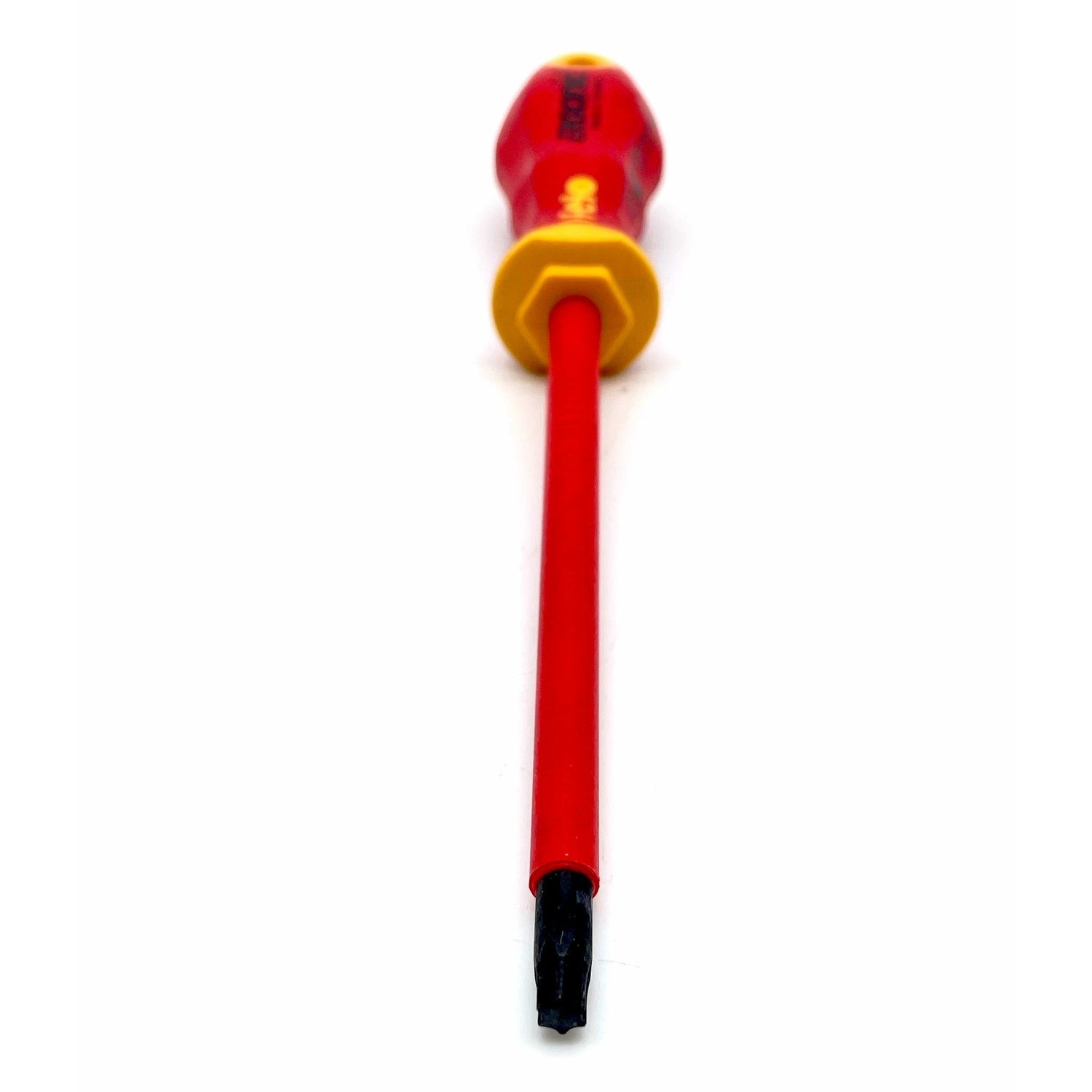 The FELO SD ERGONIC VDE TORX® T 30 screwdriver is engineered for heavy-duty fastening tasks requiring precision and safety. This VDE-insulated tool meets stringent electrical safety standards, making it ideal for live work environments.