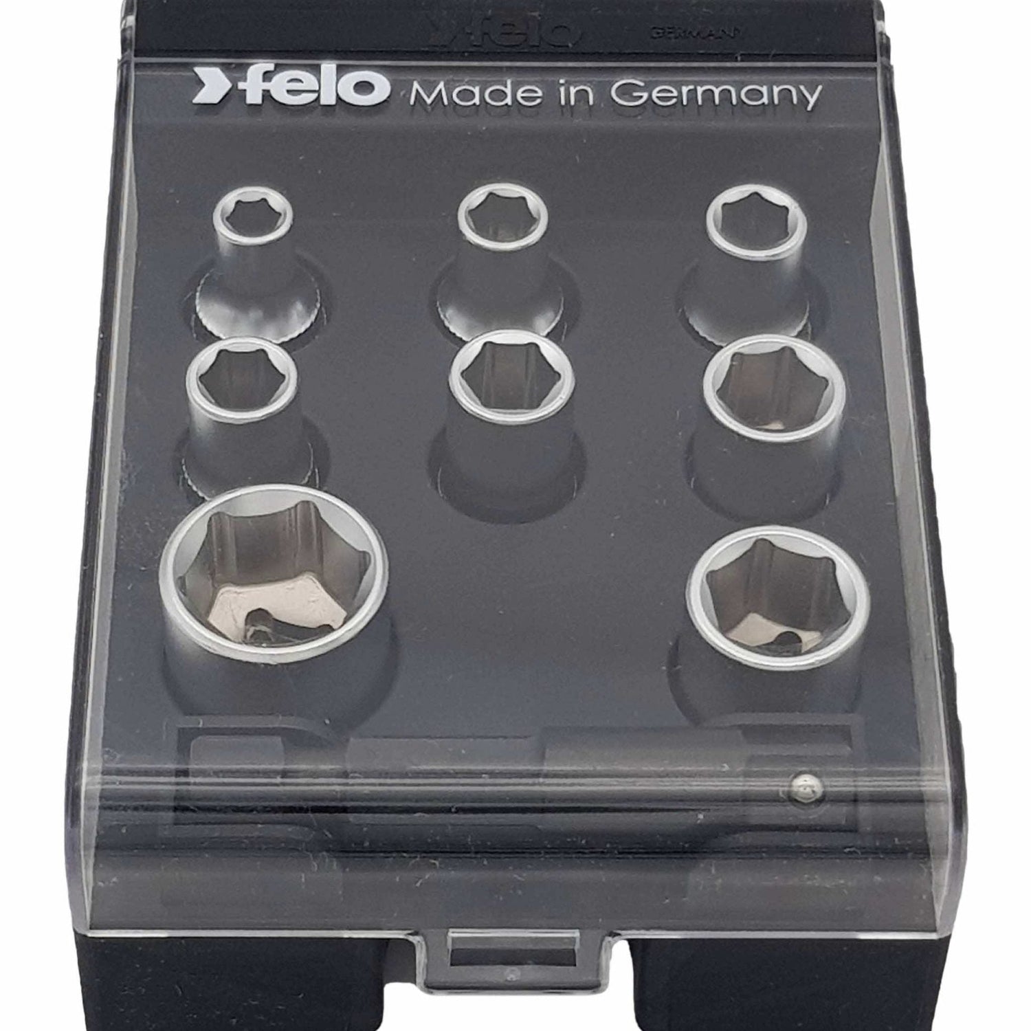 Felo's 1/4" socket set delivers precision and durability for professional mechanics and serious DIYers. This 9-piece collection features metric hex sockets ranging from 4mm to 13mm, engineered with hardened steel construction for extended tool life. The compact socket-box design keeps your workspace organized while providing quick access to frequently used sizes. Felo's reputation for German engineering ensures reliable performance on every job, whether you're working on automotive, industrial, or general maintenance tasks.
