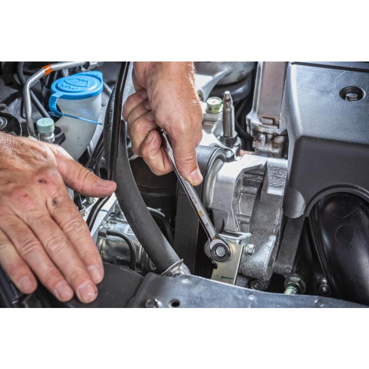 90-tooth ratcheting box end delivers a 4° swing arc to turn a fastener in tight spaces