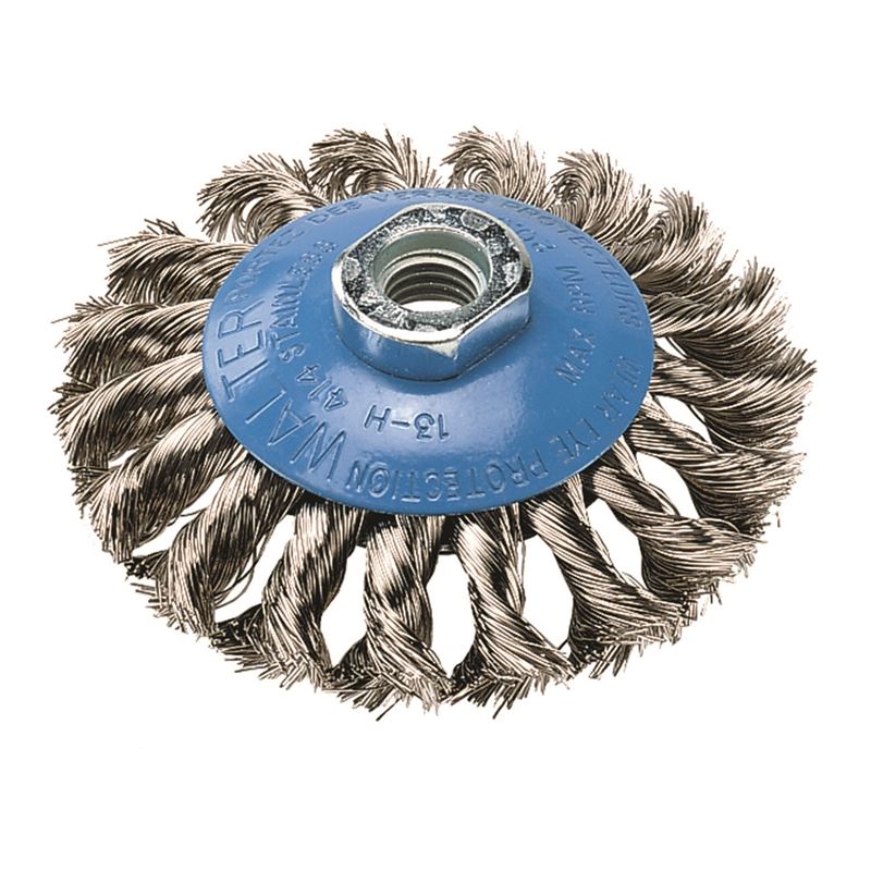 WALTER 13H414 4in X 5/8in STAINLESS STEEL SAUCER CUP BRUSH KNOT TWISTED WIRE