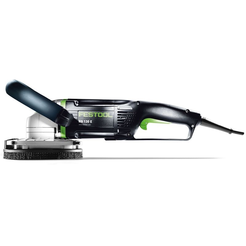 The diamond sander RG 130 E is THE removal tool on larger areas. The speed optimised for diamond tools enables quick removal of concrete, screed and coatings on hard subsurfaces. The segment which can be removed without using any tools enables proximate work - damage is ruled out with the wall stop. Thanks to the patented extractor spirals excellent extraction results are guaranteed thus enabling dust-free work.