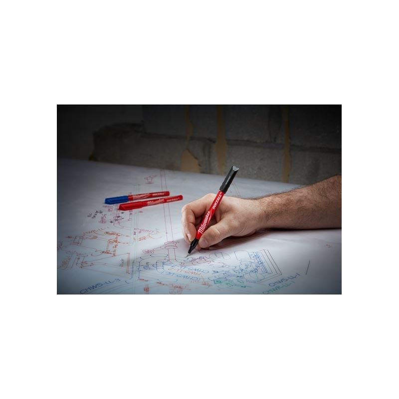 Milwaukee INKZALL ultra fine point pens are optimized for jobsite conditions and deliver sharp, precise lines. The durable ultra fine point tip delivers a 0.5 mm line for precise writing and labeling. Bleed resistant ink drys quickly and resists smears. 72 hour cap-off life delivers extended performance and use. An integrated pocket clip enables easy carry and storage.