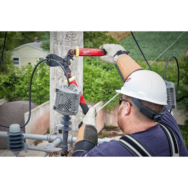 Our Fiberglass Bolt Cutters with PIVOTMOVE Rotating Handles are engineered to give you the best access. The adaptable rotating handles allow you to make more cuts around obstacles common in utility environments. The fiberglass bolt cutters are 1000V UL classified to provide you with added security. The forged steel bolt cutter blades are custom heat treated for maximum durability. Bolt Lock secures the pivot bolts to prevent loosening. The 18in bolt cutters have slim ergonomic handles allowing for comfortable use in multiple orientations. The MILWAUKEE Fiberglass Bolt Cutters with PIVOTMOVE Rotating Handles have lanyard holes integrated through the handles for easy tethering