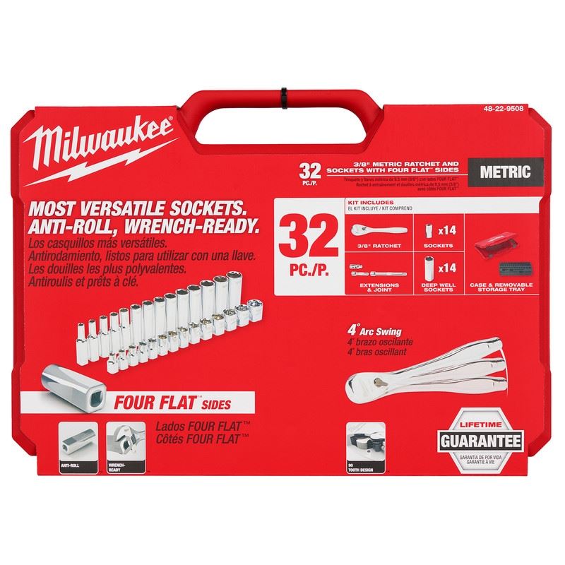 Milwaukee 48-22-9508 3/8in Drive 32pc Ratchet and Socket Set - Metric