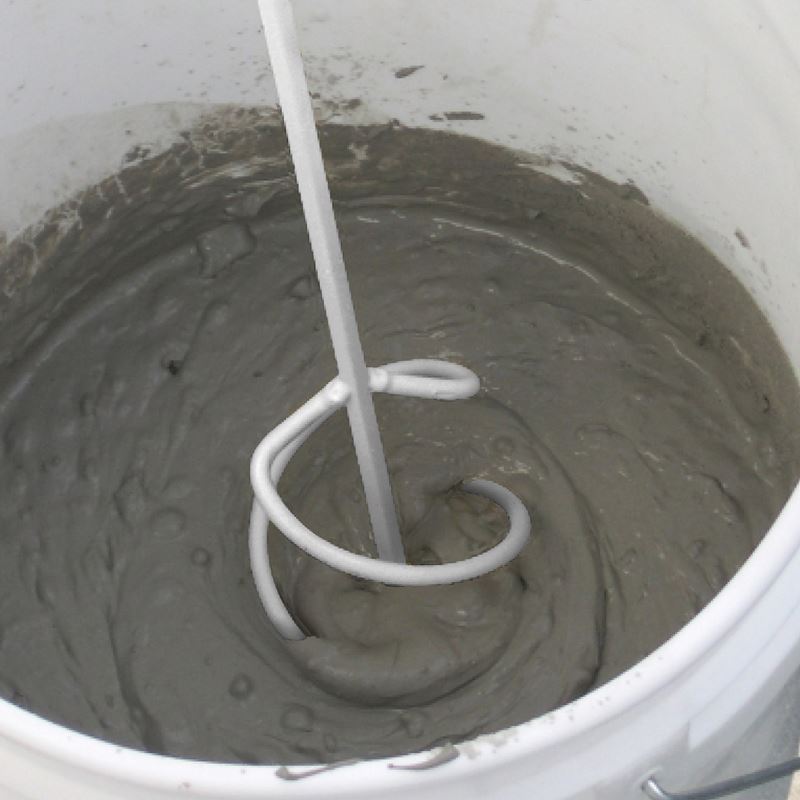 Mixes small volumes with a handheld drill, up to 5 gallons