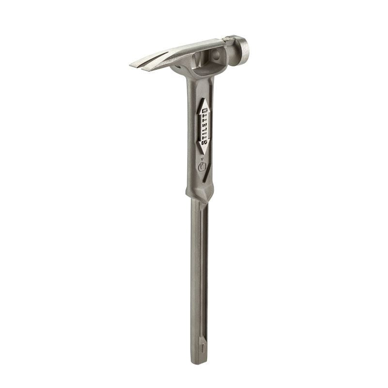 The STILETTO 10oz TRIMBONE Hammer with Smooth Steel Face and Curved Handle is designed for finish with specialized features. This titanium hammer is 45 percent less weight and hits like steel. The compact D-Face and Trim Claw are ideal for tight spaces. The TRIMBONE also features a steel face and a replaceable grip, available in 5 colors. extending the life of the hammer and providing a personal touch. The 180? side nail puller is ideal for 2D-10D nails but has the power to pull up to 16D.