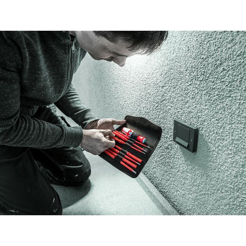 7 Kraftform Kompakt VDE Stainless blades (each 154 mm long), TX 15, TX 20 and TX 25 with reduced blade diameter with integrated protective insulation, low-lying screw and spring elements can be easily reached and operated