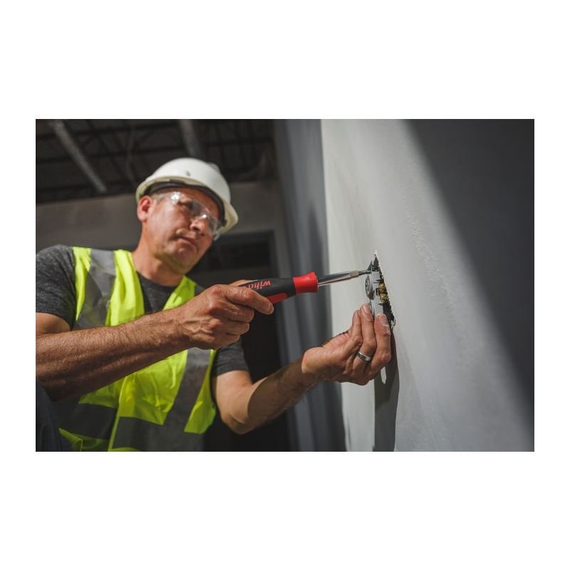 Wiha 11 in One Multi-Drivers are the standard for premium quality professional drivers featuring ergonomic cushion grip handles for comfort and control, dual durometer construction for long-lasting durability, includes parallel flats to prevent table-top roll-off, and offers an interchangeable bit and nut driver receiver system for multi-tool adaptivity. Wiha 11inOne Multi-Drivers include 8 essential screwdriver and 3 nut driver tip profiles for efficient tool carry, consist of Wiha premium quality tool steel engineered for strength and durability that feature exact fit precision machined tips to reduce cam-out of fastener heads. The nut driver component is chrome plated and the double-ended bits phosphate finished for corrosion protection and surface resilience. With the Wiha 11inOne Multi-Driver, you have a trusted companion at the ready for nearly any driver application you face on the jobsite or at home. Wiha premium quality 11inOne Multi-Drivers are designed and engineered by Wiha Germany and are made in Monticello, MN - USA under strict Wiha quality standards. You can buy with confidence knowing that the Wiha 11inOne Multi-Driver is backed by the Wiha No Hassle Guarantee.