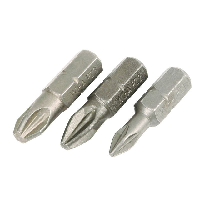 PoziDriv Insert Bit #1, 2, & 3 x 25mm (3 Bit Pack)Wiha premium bits - exact fit precision machined Universal fit for all standard bit holders & power tools Wiha special chrome-vanadium-molybdenum tool steel Through hardened for best wear resistance